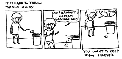 I usually get depressed after finishing a really involved project like Clumsy or Unlikely (the new book out next month). I actually started producing more once I finished undergrad, although I've drawn pretty much every day since I was two. But I became more productive once I started drawing in sketchbooks after undergrad and now I've reached a point where I can become agitated if I don't have enough time to draw during a day.